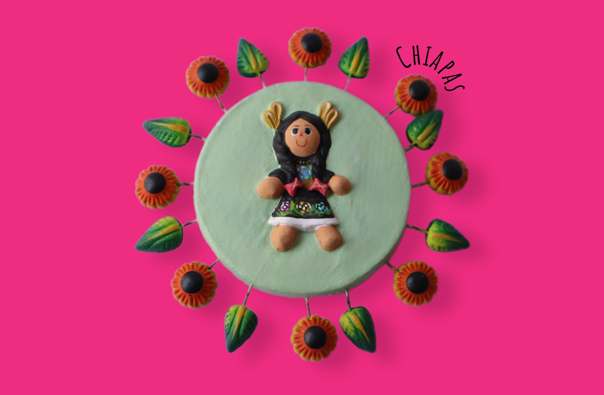 Elaboradas en barro con un diámetro de 10 cm y con imán por detrás, te recordarán que: “¡Aquí está México, hecho a mano, con corazón y memoria!”